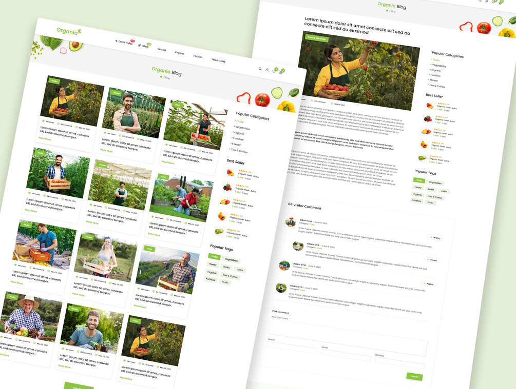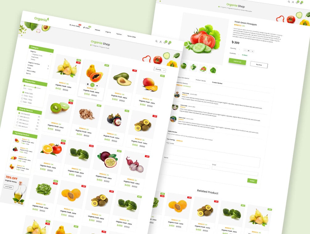Organia is a Organic & Food ecommerce Website, is clean, modern and professional. You can also use it for multipurpose ecommerce website. This website can be easily conversion into HTML, Wordpress, Magento, Woocommerce, Shopify, Joomla and other platform also. XD files are well organized and named accordingly so its very easy to customize and update.